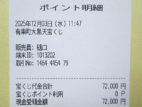 | 有楽町中央口大黒天宝くじ売り場にて発行の宝くじポイント明細です。 | 有楽町大黒天のご利益で夢の一攫千金!宝くじ大当たりを狙います♪ | 高額当選祈願!有楽町大黒天宝くじにて1等当選を祈願いたしました! |