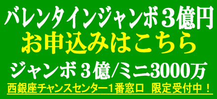 ■2026年 西銀座チャンスセンター バレンタインジャンボ バレンタインジャンボ宝くじ ジャンボミニ3000万 同時受付!