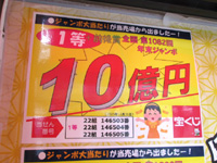 目指すは億万長者!幸運の女神さんも皆さまを大応援♪(昨年撮影) | 賞金は3億円!高額当選を狙うにはコツコツ継続買いが一番です! | 宝くじ売り場サービスでは必ず人気の1番窓口で購入代行いたします! |