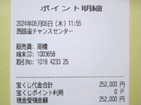 ご利用の皆様にもポイント還元♪西銀座1番窓口発行の購入明細です。 |